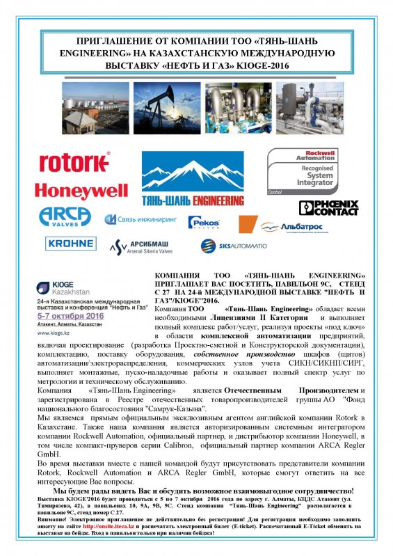 Во время выставки вместе с нашей командой будут присутствовать представители компании Rotork, ARCA и Rockwell Automation, которые смогут ответить на все интересующие Вас вопросы.